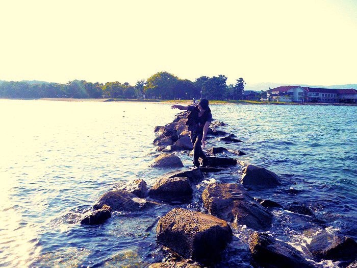 途中の岩場に靴置いて裸足で全力で追い越したった