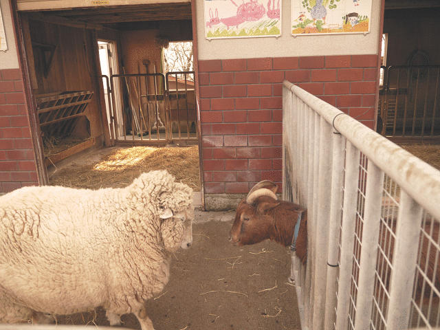 ヤギはオスとメス二匹いっしょの柵にいて、ヤギ同士でごっつんこしてたんだけど、