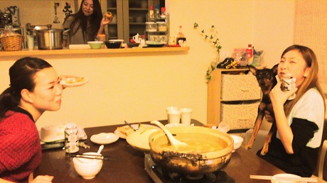 まなさんのパパさんお手製の鍋をまなさんとイッチンとありさで頂いた!!